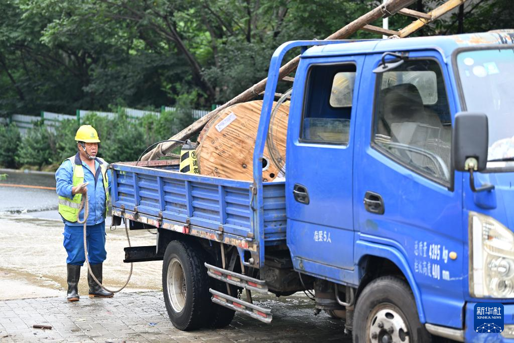 7月29日,搶修人員在天津市薊州區下營鎮常州村。”準備修復光纜。